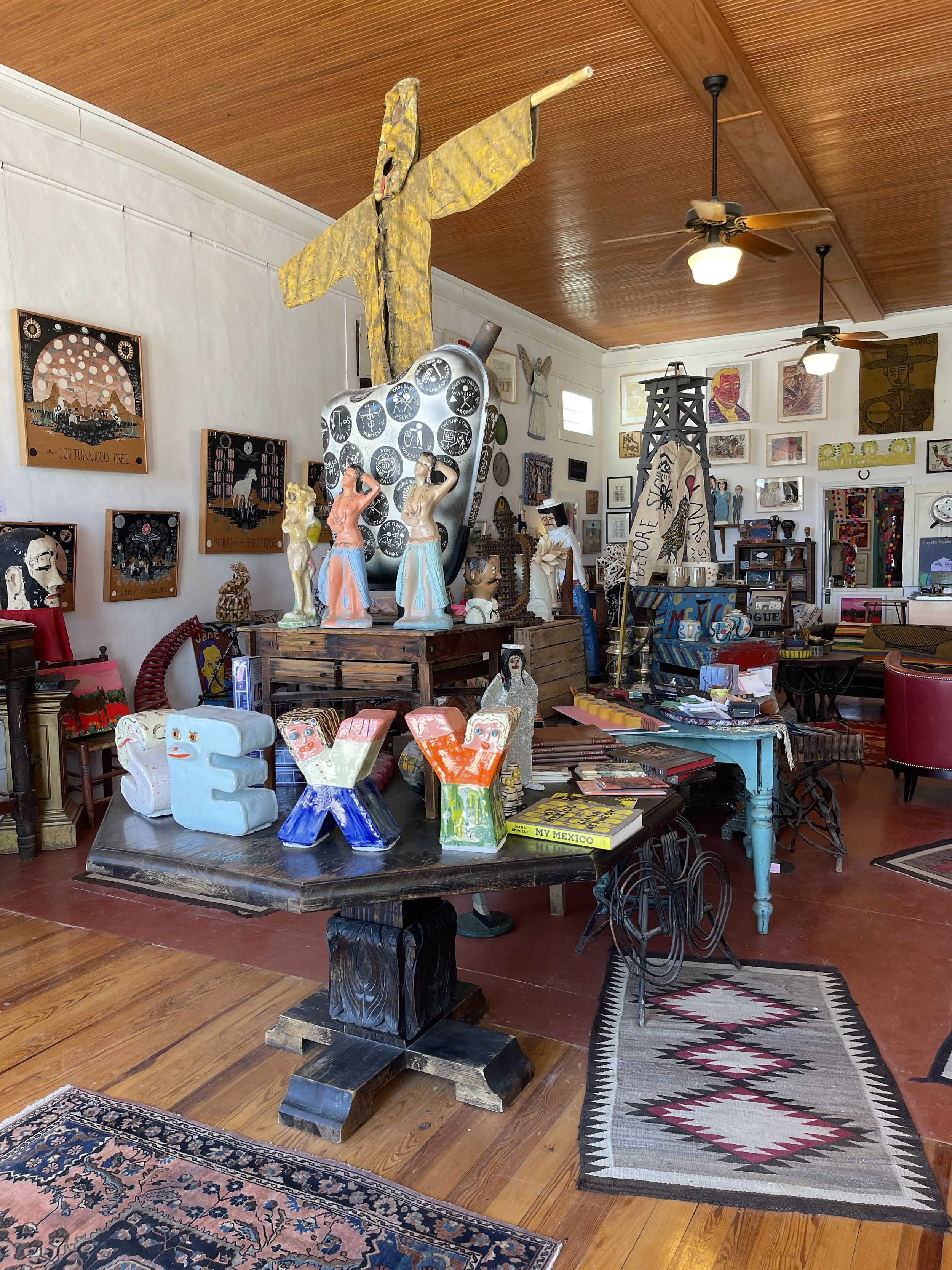 In addition to rotating exhibits, we have a huge and ever-changing inventory of artwork, antiques, books, supplies, and artist designed projects.